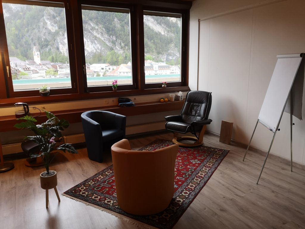 Die Therapiepraxis befindet sich an der Aareckstrasse 6 in Interlaken im dritten Stock des ehemaligen Swisscomgebäudes. Dieses ist ca. 3 Gehminuten vom Bahnhofes Interlaken West entfernt. Der Eingang befindet sich auf der linken Seite des Gebäudes bei der weissen Tafel. Falls die Türe geschlossen ist bitte klingeln bei Psychotherapie Firmin / Koch. Sie können mit dem Lift in den 3. Stock fahren, dann nach der Etagentür an den WC-Anlagen vorbeilaufen. Der Praxisraum befindet sich etwas weiter den Gang entlang neben der Anwaltskanzlei. Falls Sie es nicht finden bitte anrufen, dann hole ich Sie gerne ab.
